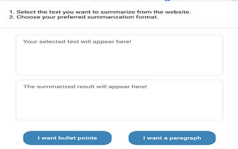 Con Smart Summarizer, puedes resumir rápidamente y fácilmente cualquier documento que encuentres mientras navegas por la web. Ya sea un extenso artículo, un trabajo de investigación o un informe de noticias, este complemento puede ayudarte a extraer la información más importante de manera concisa y eficiente.